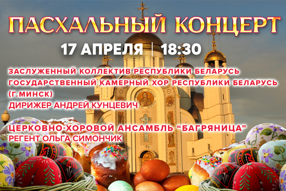 Стало доброй традицией выступление на праздничном концерте церковно-хорового ансамбля «Багряница» (регент Ольга Симончик). Хор певчих собора Трёх Святителей наполнит сердца присутствовавших светлой пасхальной радостью, верой и любовью.